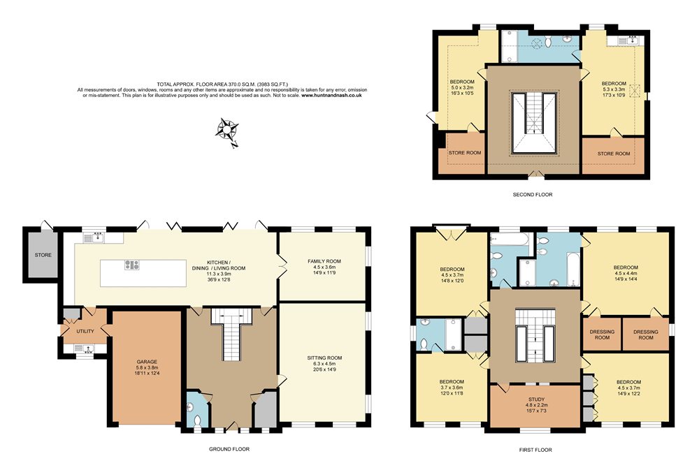 On the first floor are four double bedrooms including a master suite and guest suite plus a family bathroom for bedrooms three and four. Also on the first floor is a study/home office and a continuation of the bespoke staircase returning to the second floor.